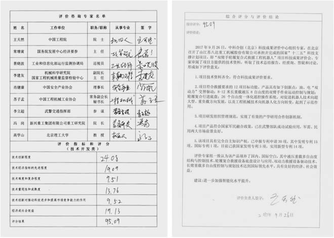 2017年9月26日,經(jīng)科技部授權(quán)批準,中科合創(chuàng)(北京)科技成果評價中心組織專家,在北京召開了由江蘇八達重工機械股份有限公司承擔并完成的國家“十二五”科技支撐計劃項目,即“雙臂手輪履復合式救援機器人”項目科技成果評價會。
